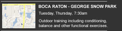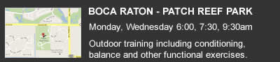 EdgeFit offers fitness classes in the Boca Raton, Delray Beach and Boynton Beach areas. These classes are typically held in the early morning hours to ensure one less interruption during your day. Classes with our certified trainers range from beginner level to advanced, specified training allowing everyone a chance to improve their quality of life. Classes are held in public parks and by the beach and are available Monday through Friday. EdgeFit will make sure you do not feel “lost” in a class session and will not abandon your individual fitness concerns or questions. Please call for more information so we can assure you are attending the correct class for you. Exclusive student discounts are available as well.